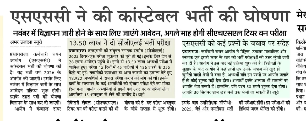 | ✅What is SSC GD? General Duty Constable recruitment by Staff Selection Commission for CAPFs, Assam Rifles (Rifleman GD), NIA, and SSF. ✅What is the selection process? Computer-Based Exam (CBE) → PET/PST → Medical Examination → Document Verification. ✅Where will official updates be released? On the SSC portal (ssc.gov.in) only. Important dates ✅When will the notification release? Tentatively around Oct–Nov 2025; exact dates will be in the official notice. ✅When is the exam expected? Tentatively Jan–Feb 2026; final schedule will be notified by SSC. ✅Is there a correction window? Yes, generally after the application period; exact rules come in the notification. Eligibility ✅What is the educational qualification? Matriculation/10th pass from a recognized board by the prescribed cutoff date. ✅What is the age limit? Usually 18–23 years, with statutory relaxations for reserved categories as per rules. ✅Is there any attempts limit? No fixed attempts cap; attempts are allowed until crossing the age limit. ✅Who can apply for nationality? Indian citizens only. Application and fees ✅How to apply? Online only through ssc.gov.in during the application window. ✅What is the application fee? Typically Rs 100 for General/OBC/EWS males; Women/SC/ST/Ex‑Servicemen are usually exempt. ✅What payment modes are accepted? Online methods such as cards, net‑banking, and UPI as enabled on the SSC portal. Exam pattern ✅What is the exam mode and language? Online CBE; bilingual (English and Hindi). ✅What are the sections? General Intelligence & Reasoning, General Knowledge/General Awareness, Elementary Mathematics, and English/Hindi. ✅How many questions, marks, and duration? Commonly 80 questions for 160 marks, 60 minutes. ✅Is there negative marking? Yes, typically 0.25 mark deduction for each wrong answer. Normalization and result ✅Is normalization used? Yes, SSC applies normalization across multi‑shift exams; exact method is specified in exam instructions. . | |||||